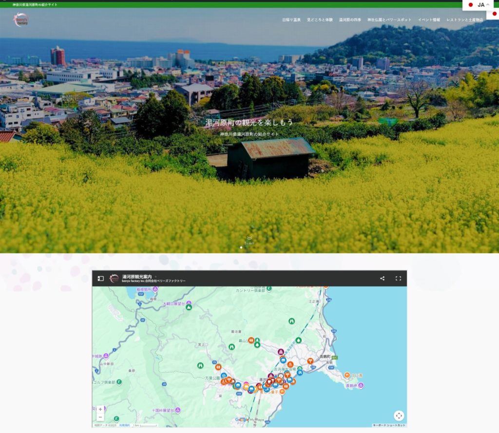 ✅湯河原温泉の『観光、遊び、カフェ、飲食、お土産、日帰り温泉』などを地図とともにご紹介した多言語翻訳切り替え付の観光サイトを作りました。